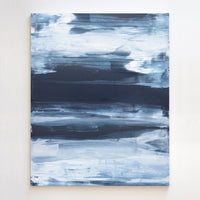Capturing a coastal visual that fascinates, overwhelms and inspires. Tones of deep navy mingle with white creating soft middle toned blues to form this abstract coastal print. Further enhanced with metallic silver leaf to add depth and interest.