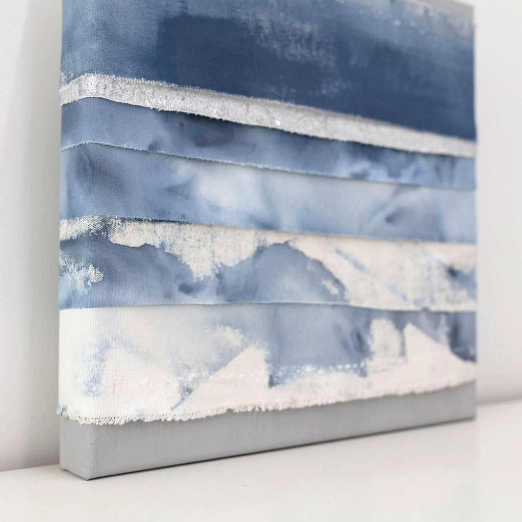 In this latest set, I continue my exploration through a tactile, layered approach. Here, painted canvas becomes both the medium and the message. I begin by painting larger abstract compositions, then tear them into strips—fragments that are reassembled and composed into new works. These pieces are not painted in a single gesture, but instead built from intentional disassembly and re-formation. The result is a visual language of rhythm, contrast, and quiet strength.