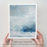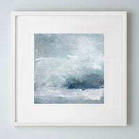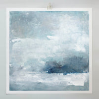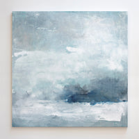 An abstracted coastal-inspired painting, this piece draws you in through the mystery of a misty landscape.