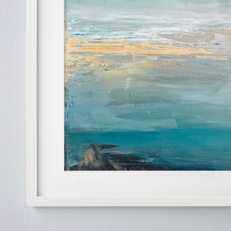 Gallery Wrapped Canvas Prints- We offer gallery wrapped canvas prints which are mounted over wood stretcher bars and are ready to hang. There is also the option to add a floater frame. A floater frame is a style of frame where the art is mounted from behind making it appear as if it is not touching or “floating” within the frame. This style does not use any glazing or a mat. It’s only offered for works on canvas and is usually deeper than a traditional frame, as it has to cover the stretcher bars the artwork is mounted to. We offer several color options — white, white oak, walnut and black and metallic tones — warm silver and gold. Please reach out to request additional frame photos if you have questions.